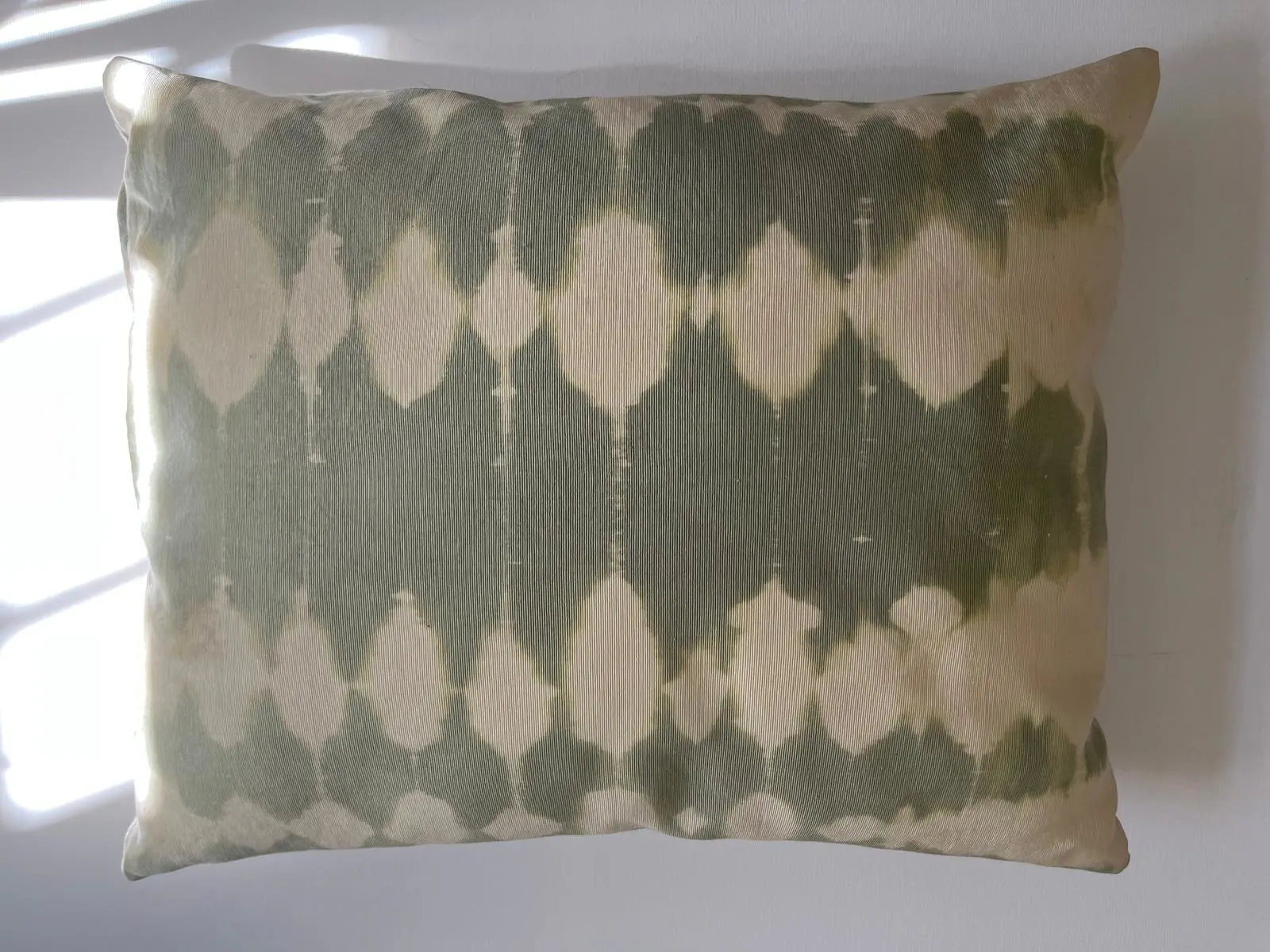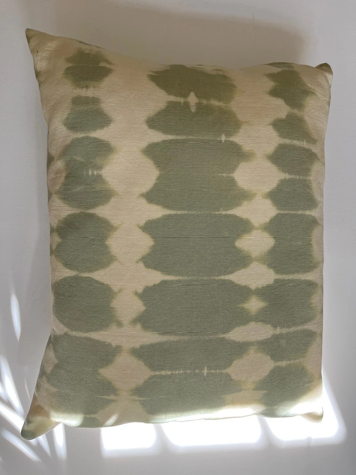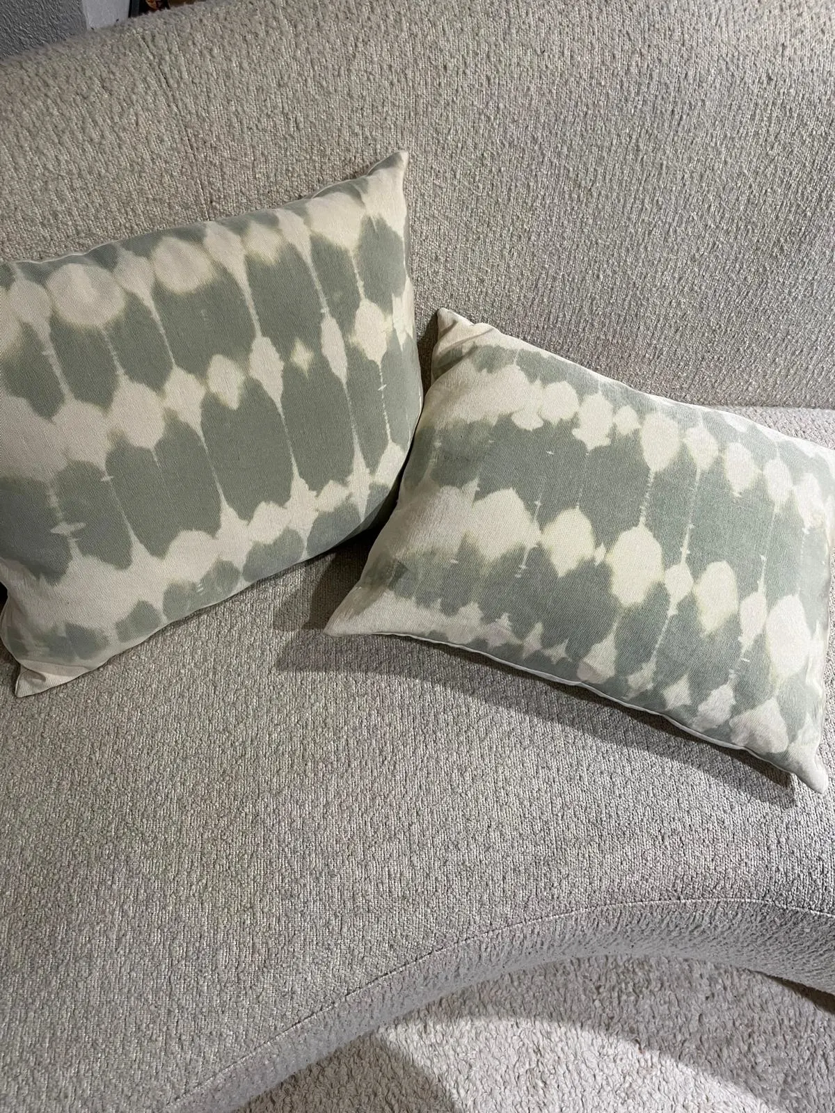 Coppia di cuscini in canetè vintage verde salvia decolorato, retro in tela di cotone, interno in polifil incluso, 48×38 cm.