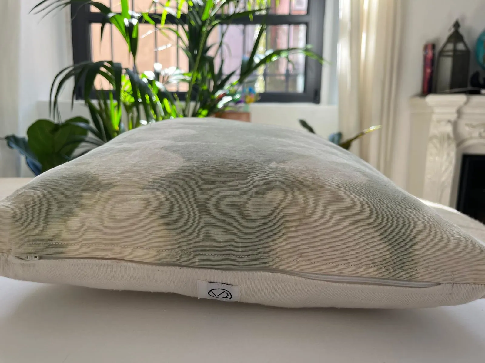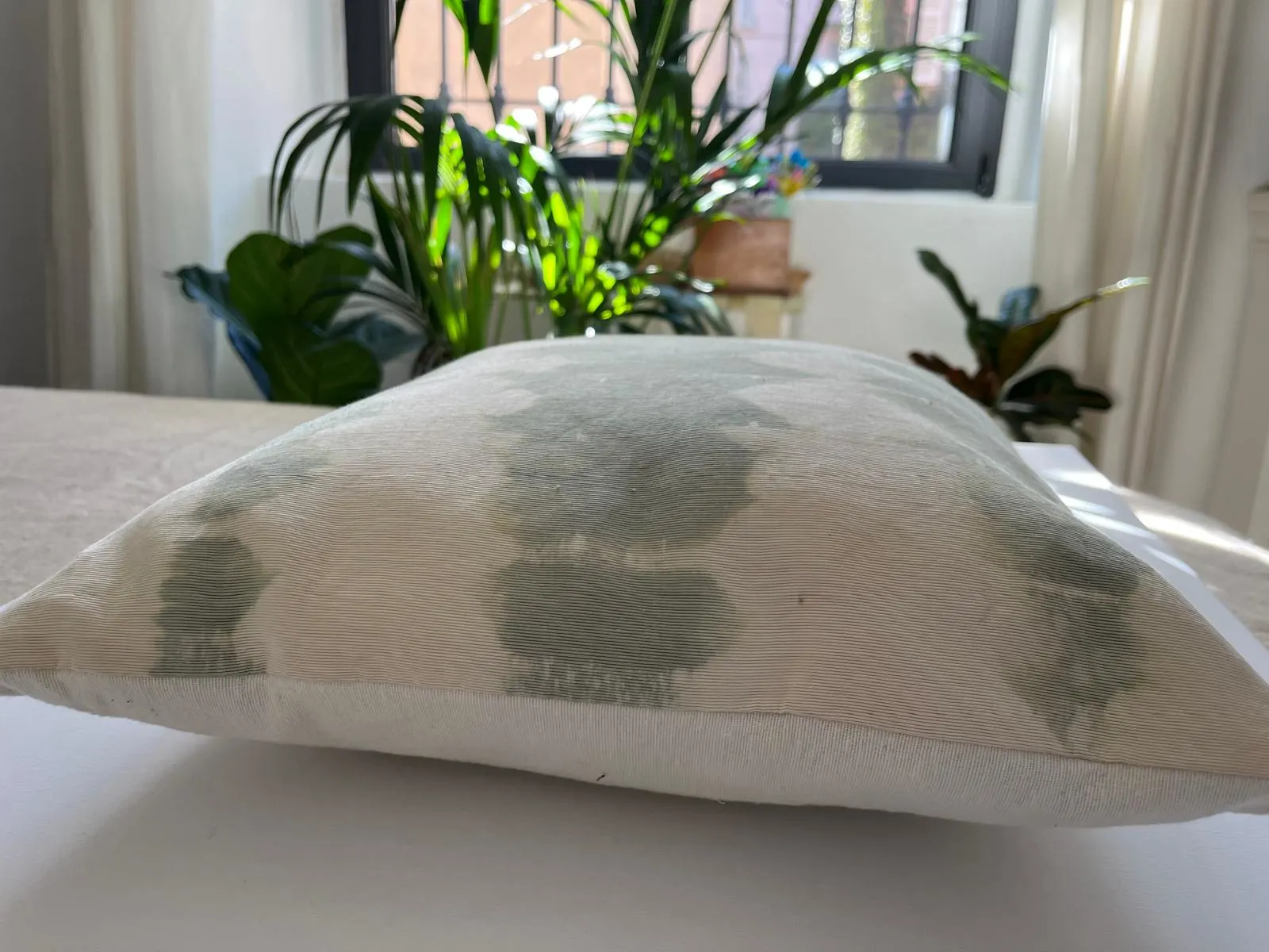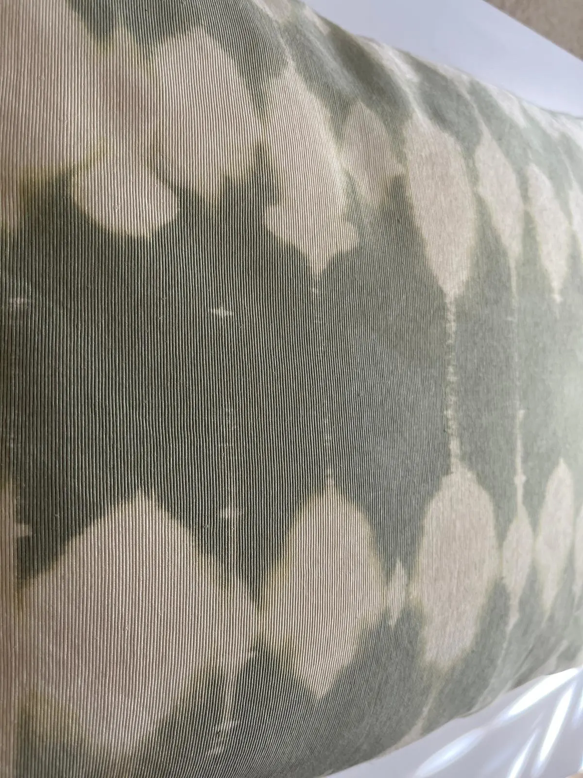 Coppia di cuscini in canetè vintage verde salvia decolorato, retro in tela di cotone, interno in polifil incluso, 48×38 cm.