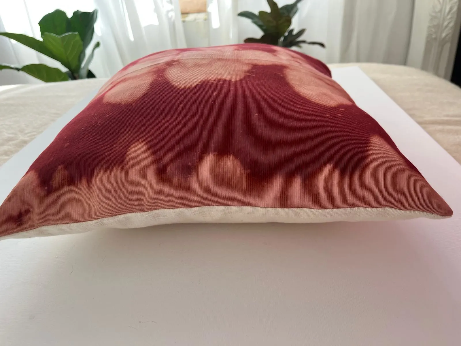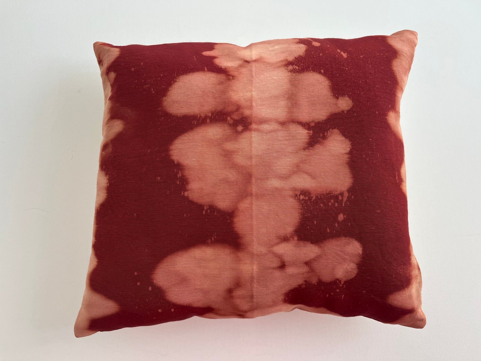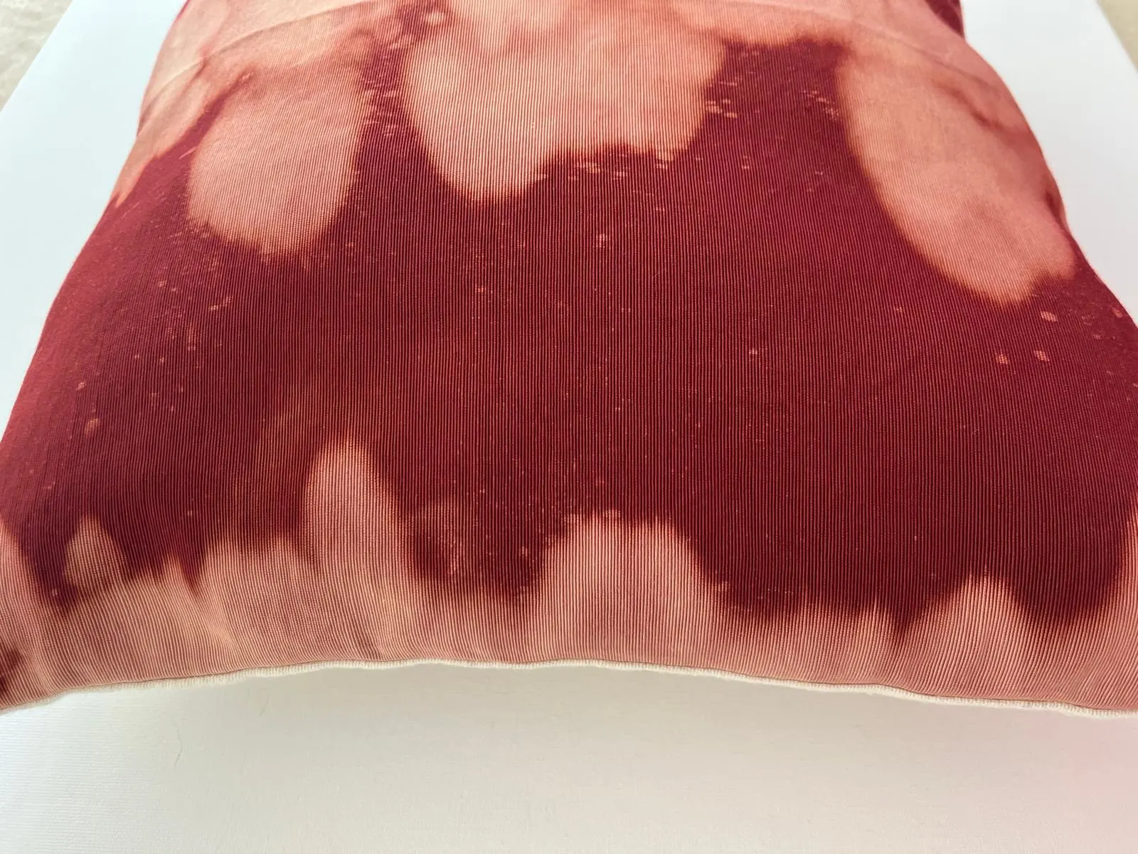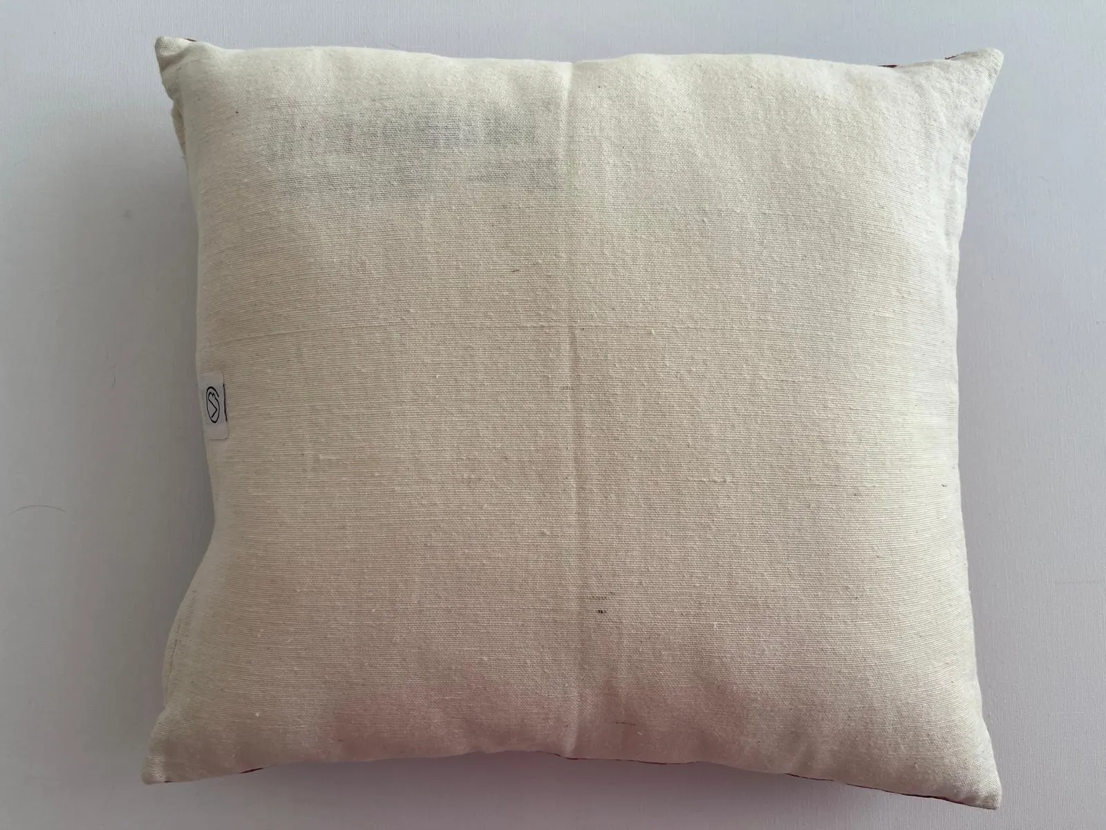 Cuscino in caneté vintage rosso bruciato decolorato, retro in tela di cotone ecru, interno in polifil incluso, 40×35 cm.
