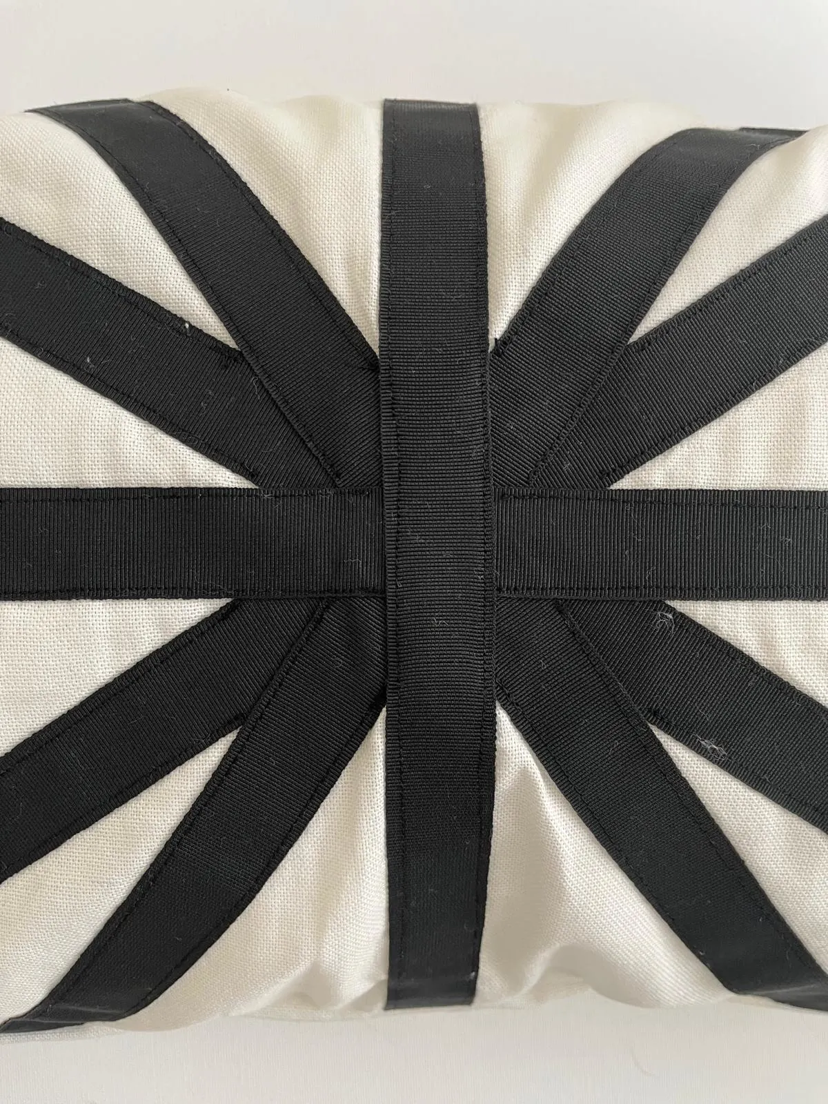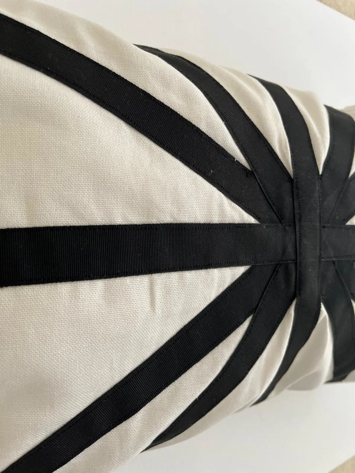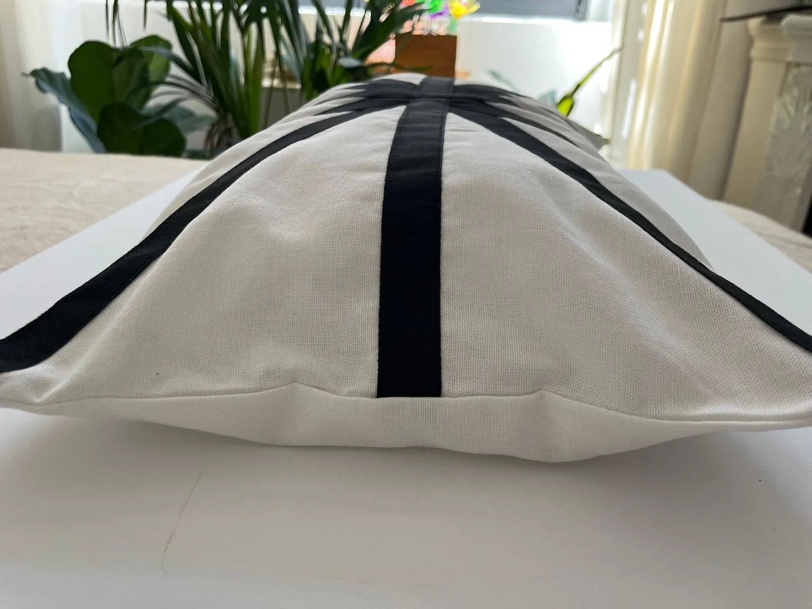 Cuscino in tela di cotone bianco con applicazione di canetè nero, interno in polifil incluso, 53×35 cm.