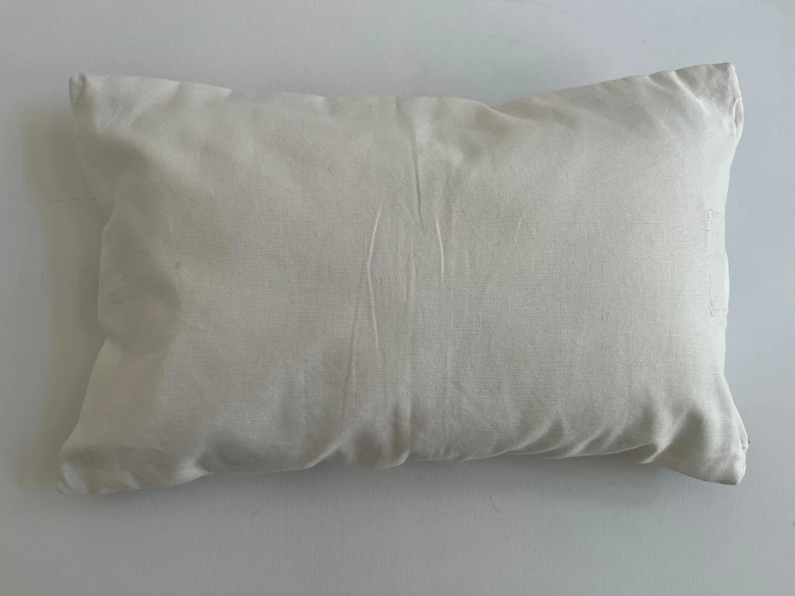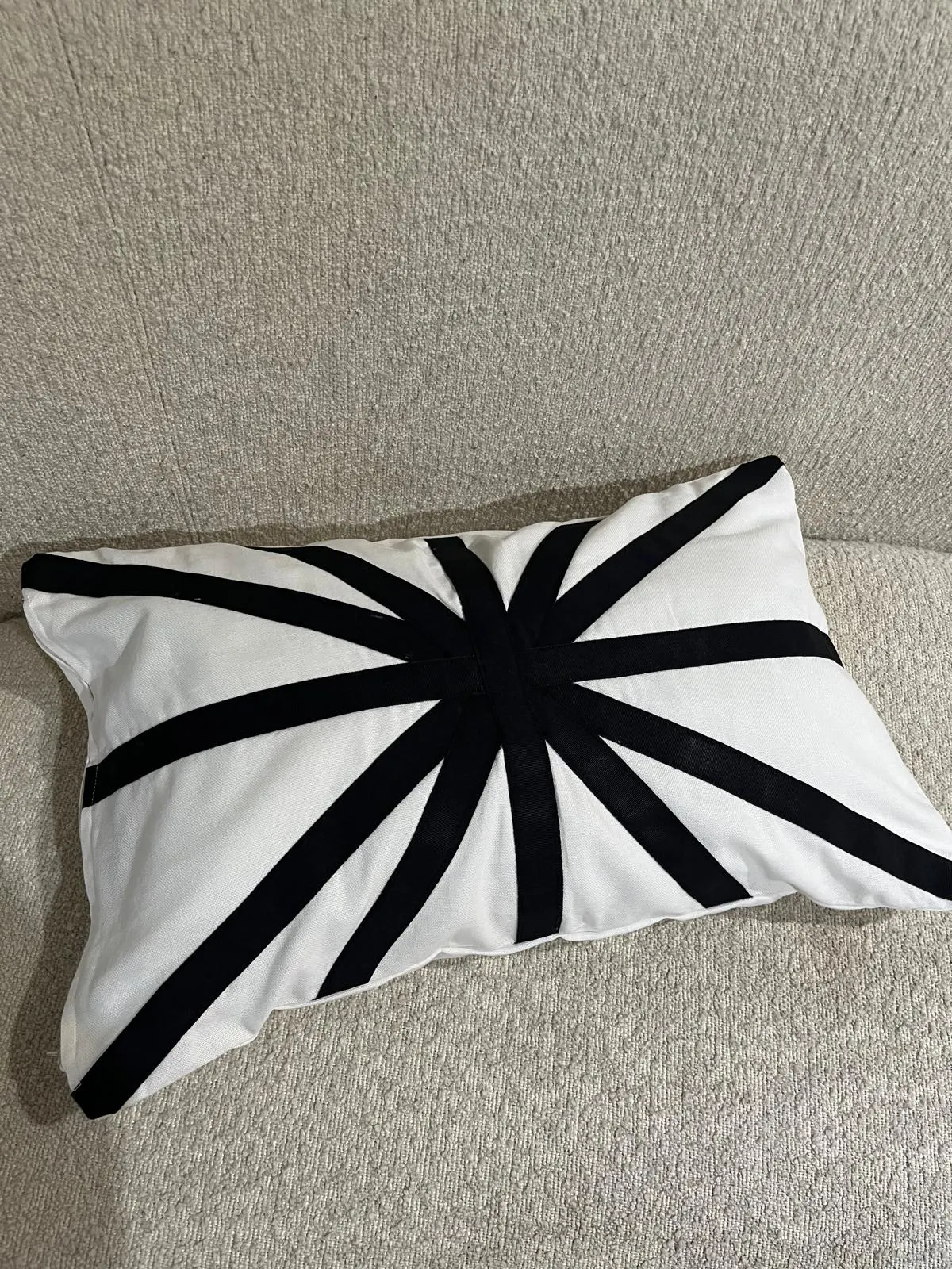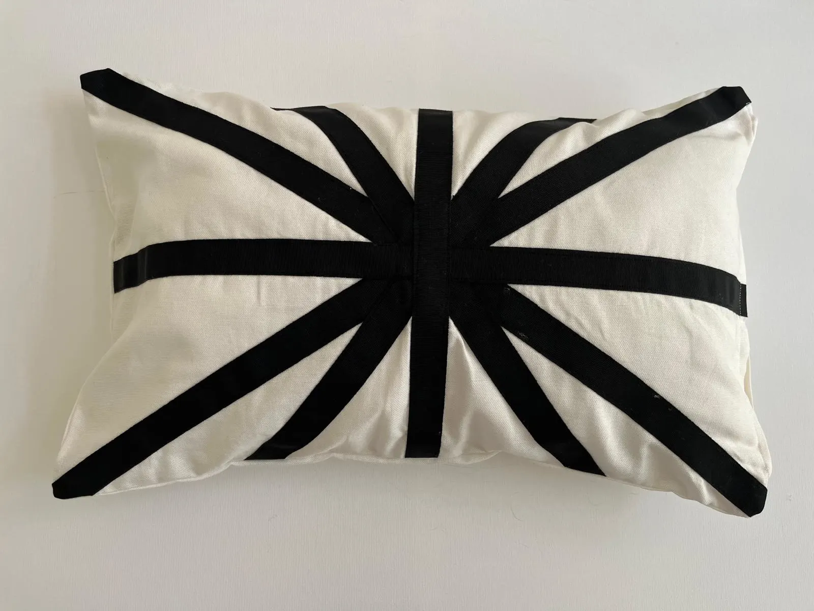 Cuscino in tela di cotone bianco con applicazione di canetè nero, interno in polifil incluso, 53×35 cm.