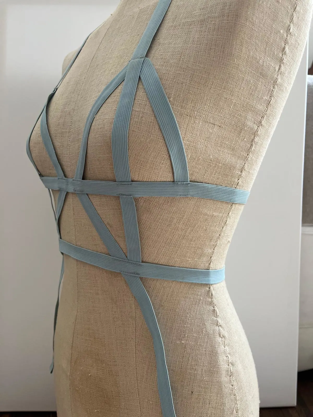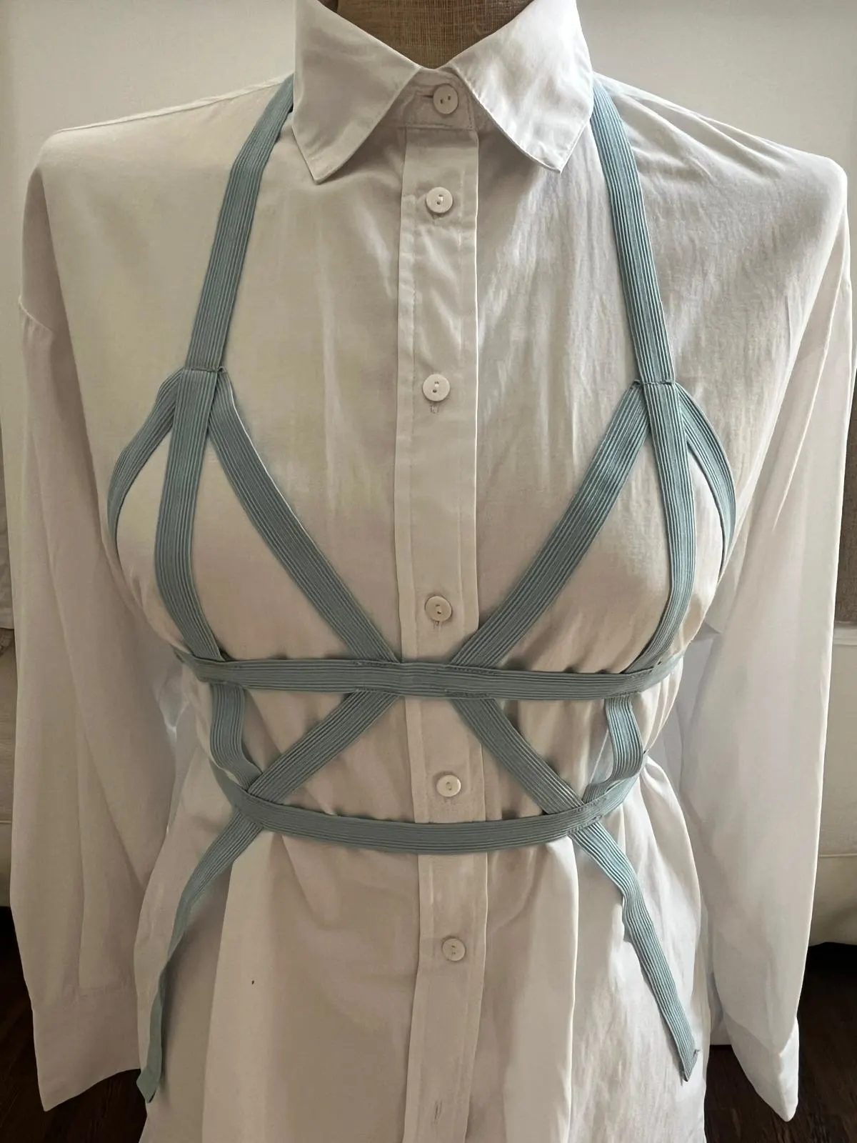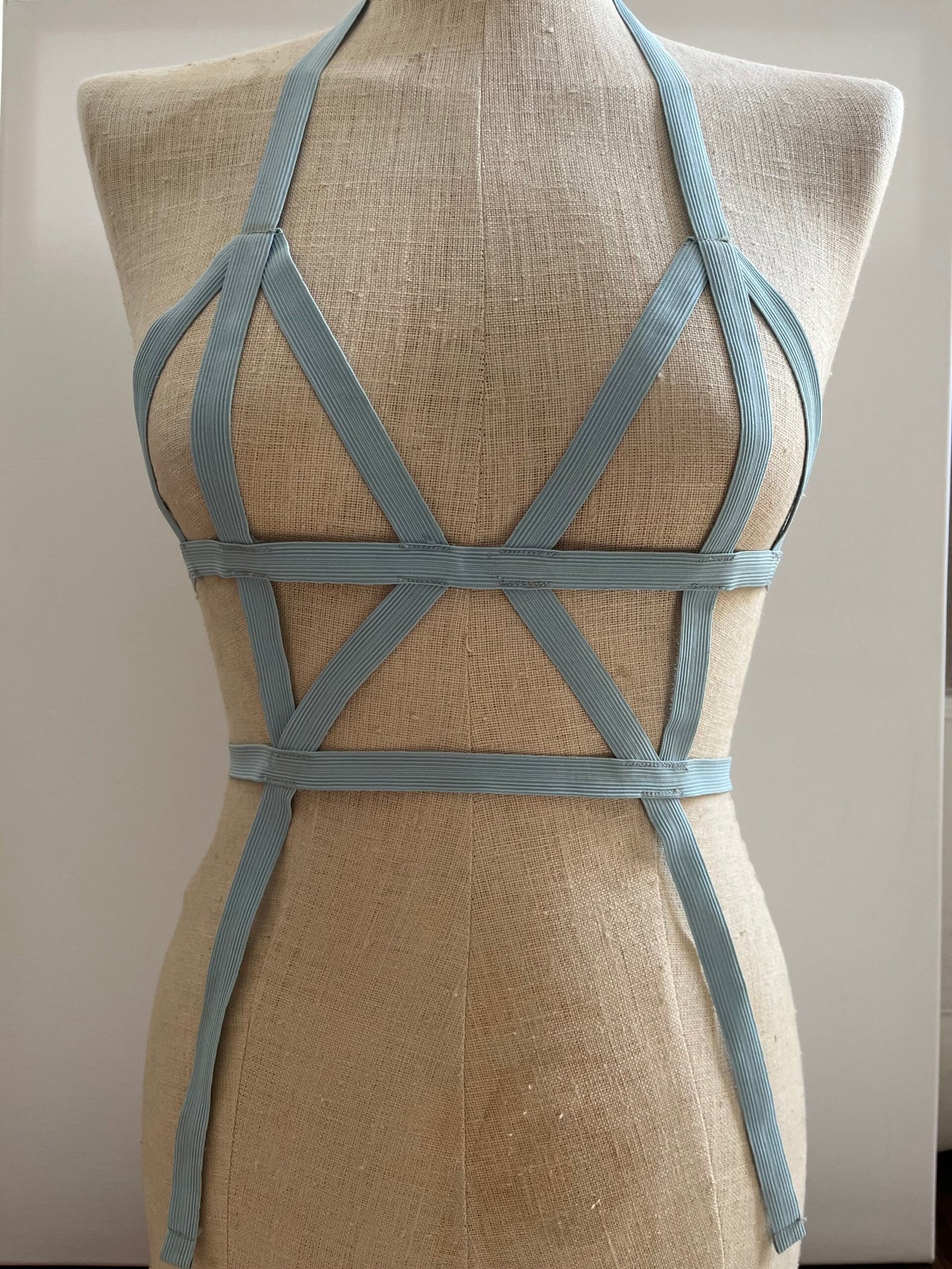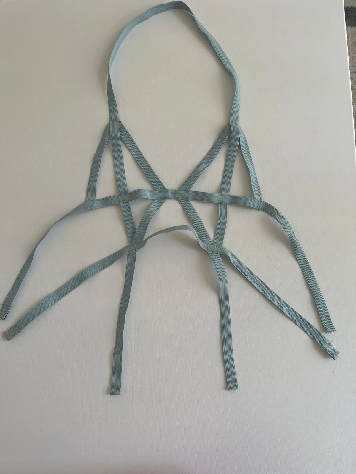 Accessorio Mida realizzato con fettucce in elastane, chiusure a gancetto. Taglia S, seno 1/2.
